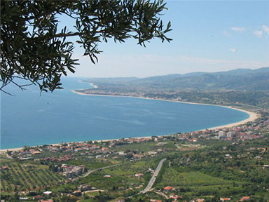 Alle spalle, a pochi chilometri, i contrafforti verdi e rigogliosi delle Serre con boschi di castagni, pini, abeti e faggi. Ruderi e reperti archeologici testimoniano la presenza della fiorente civiltà della Magna Grecia.